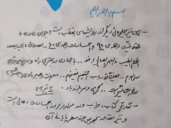 درست از لحظه اعزام به سوریه، کارم شده بود وبگردی و عضو شدن در هر کانالی که مرتبط با جنگ سوریه بود. خبری نبود که از زیر دستم در برود. روزهای اول حتی به ما نمیگفت که دقیقاً در کدام منطقه است تا من به جای کل سوریه، فقط خبرهای همان نقطه را دنبال کنم. آنقدر نقشه سوریه و اخبارش را بالاپایین کرده بودم که سوریهشناس شده بودم. در تماسهای اولمان، نمیدانستم باید چطور سوالاتم را مطرح کنم که هم مرتضی منظورم را متوجه شود و هم بتواند راحت جوابم را بدهد. پرسیدم «کلاسهاتون شروع شده؟» انتظار داشتم مرتضی متوجه بشود منظورم این است که با دشمن درگیر شدهاید یا نه. جالب این بود که مرتضی خیلی زود منظورم را متوجه میشد و جواب میداد. بعد گفتم «بارون زیاد میآد؟» منظورم این بود که تیر و ترکش زیاد است یا نه. مرتضی گفت «نه؛ هنوز بارون نیومده. فعلاً هوا آفتابیه». (صفحه ۱۸۵)